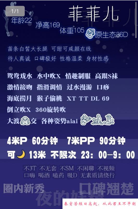【特别注意】:凡是需要支付定金或路费的都是诈骗,再次提醒各位,一定不要先给钱!建议服务完后再给钱,或者谈好先给部分完事给剩下的。遇到还没服务就先给钱的,要千万小心被跑路和服务体验差,无数会员反馈谈好过夜却中途找借口跑路的情况!见面感觉不对劲就宁愿不玩,不然花了钱玩不开心得不偿失!
