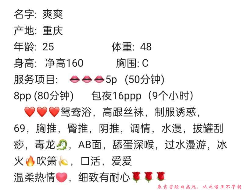 过年几天憋的够呛,大部分都回家了,看朋友圈爽爽回来了,果断联系出击,还是熟悉的味道,服务多,态度好,喜欢在洗澡的时候,她口含温水给我口,弟弟酥酥麻麻的,最爱她的毒龙,憋了好几天,最后插了几分钟出货走人。